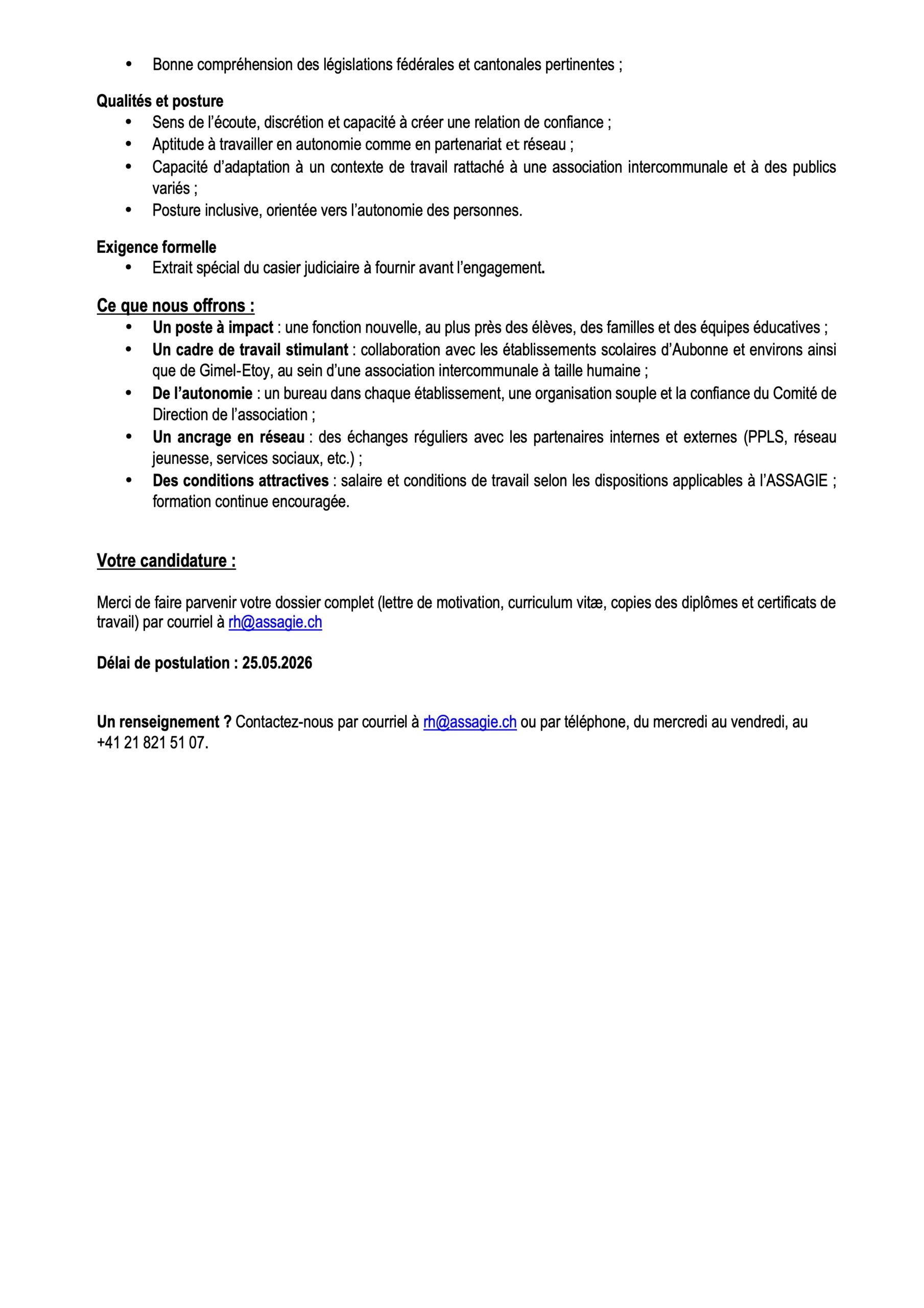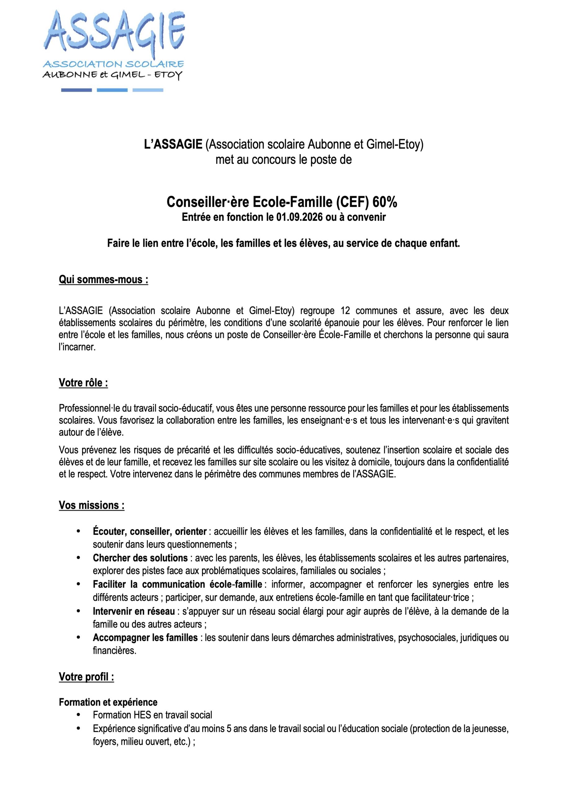Offre d’emploi ASSAGIE